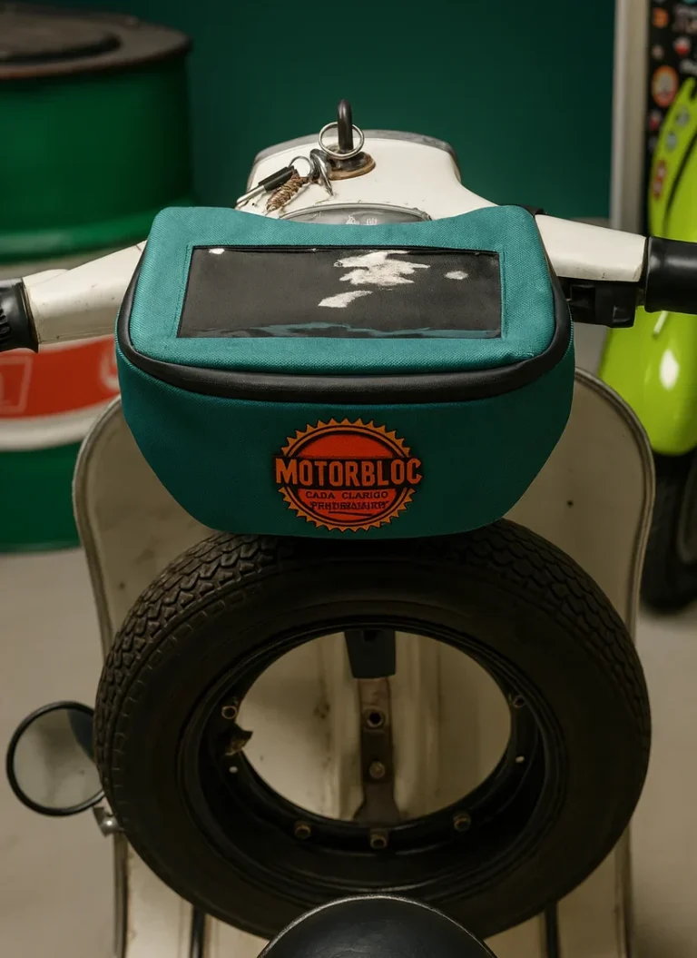 Bolsa portaobjetos diseñada específicamente para scooters clásicos, perfecta para montar en el manillar sin modificar la estética original. Su ventana frontal transparente permite ver la pantalla del móvil mientras conduces, ideal para usar GPS, mapas o indicaciones rápidas sin perder la vista de la carretera.