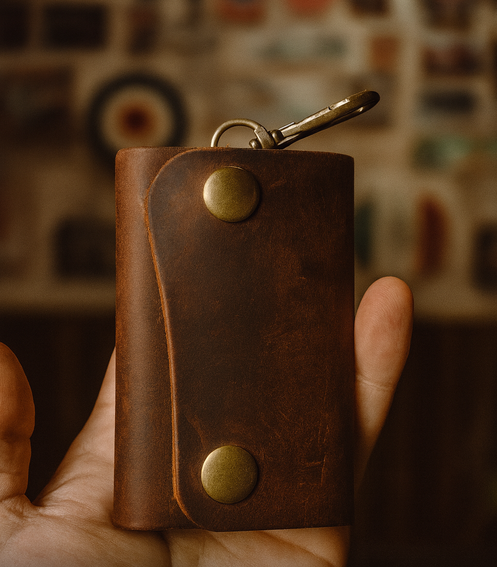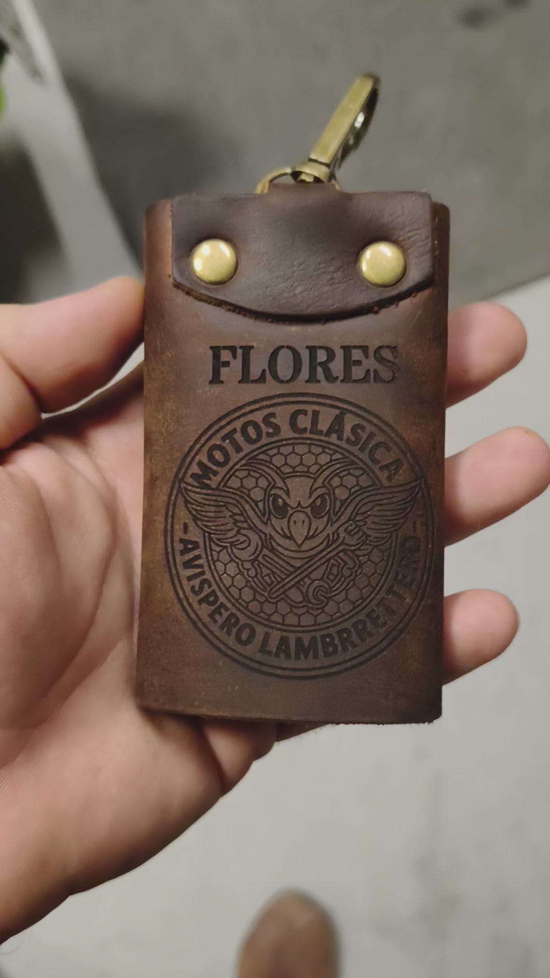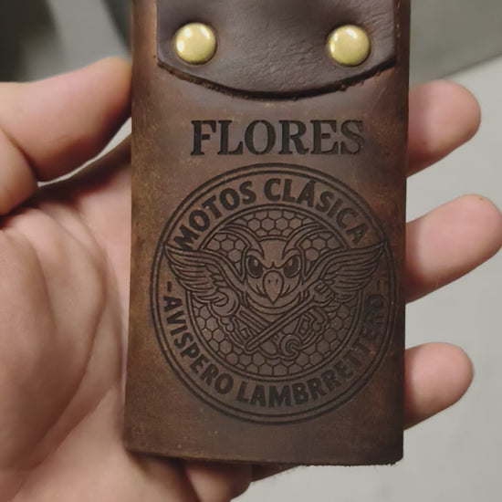 El toque ideal para tu Vespa, Lambretta o vehículo clásico. Hecho a mano en cuero auténtico y grabado a láser con el diseño que elijas, este portallaves une estilo, tradición y funcionalidad.